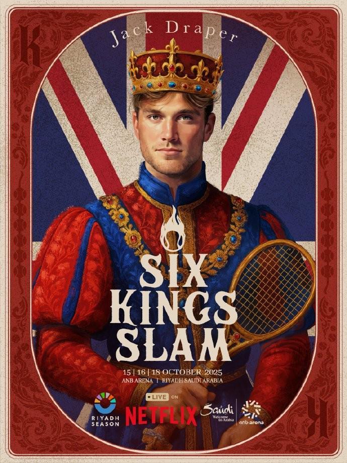 9月5日,2025年网球“六王大满贯”单人海报公布,该项赛事将于10月15日-18日在沙特进行。