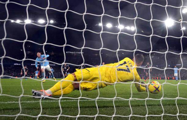 结果哈兰德替补出场就立刻接德布劳内的传中头球破门,不过因越位在先进球无效。比赛进入伤停补时阶段,富勒姆的安东尼·罗宾逊在禁区内对德布劳内犯规被处以极刑。第94分钟,哈兰德罚入压哨点球,帮助曼城2比1完成绝杀。